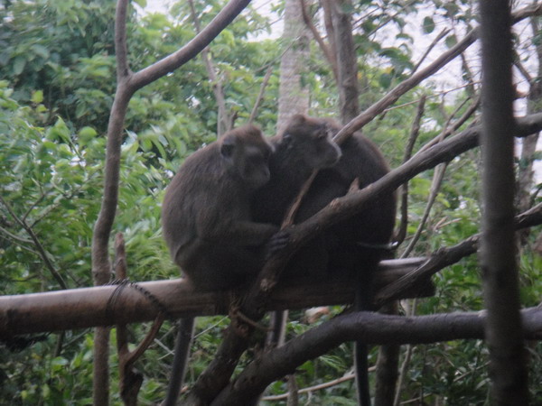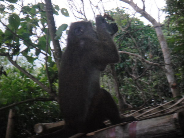後來法國麵包一直在拍他 他不爽一直露出牙在亂叫, 我們才離開(哈 ~自戀狂小猴子)