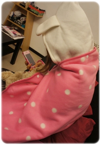 後來我就去別的地方買了二個類似的小毛毯送她們, 一樣也是好可愛, 她們好開心,睡著都要抱著XD