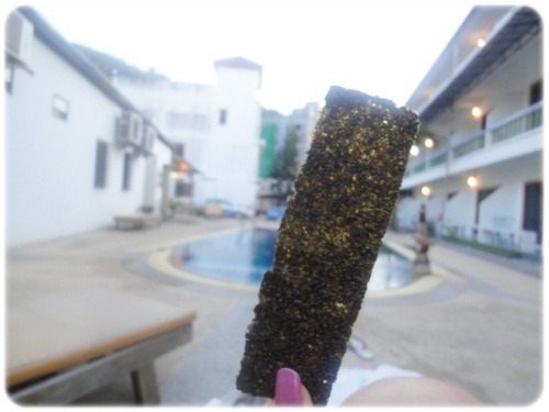這一天柚柚不方便下水, 所以我在躺椅上悠閒地做日光浴, 還有享受著從便利商店買回來的零食和飲料