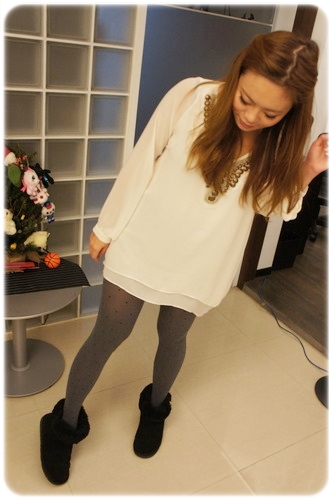 因為有愛, 所以這一雙襪子最近很常穿! 搭上踝靴, 褲襪本身的修飾度讓整體的比例又顯的更好了