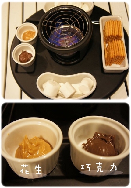 烤完的棉花糖, 可以自己沾自己喜歡的醬,加上餅乾, 就是烤棉花糖夾心餅乾