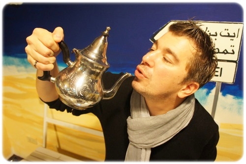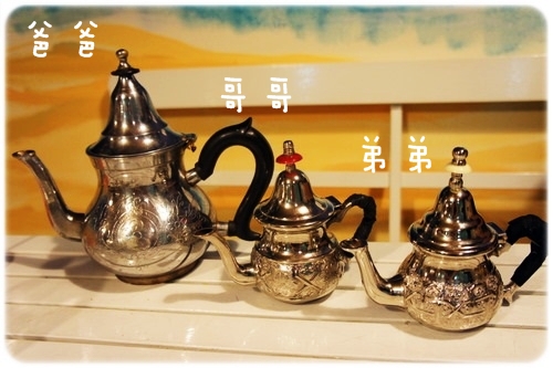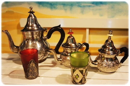 精緻的銀托盤,擺放著異情色彩濃厚 花紋繁複的摩洛哥茶杯, 配上現場的異國風音樂,真的有如置身於摩洛哥北非風情般