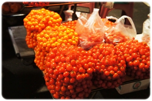 小小的攤位上放著好多新鮮的蔬果, 完全不加水是讓我們想掏錢的原因之一