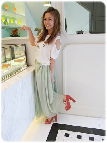 我們無意間逛到一個小小韓貨店, 看到很繽紛的馬卡龍色系雪紡長裙 $1250