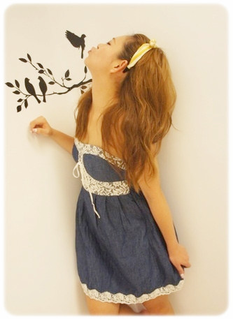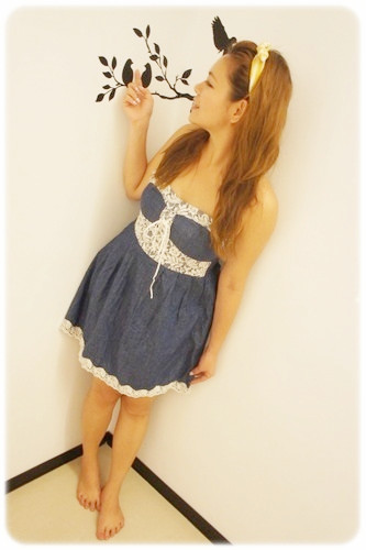 好感度的丹寧配上唯美的白色蕾絲, 這件真的超級可愛的, 而且一件只要$200塊,你說能不買嗎? (大笑)