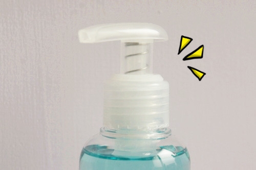 按壓式的壓頭有個很貼心的設計,以往都是會附一個小扣環扣住避免液體溢出