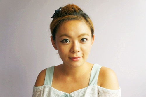 這天的妝容有粉底液、染眉膏、眼線筆、睫毛膏、腮紅和口紅