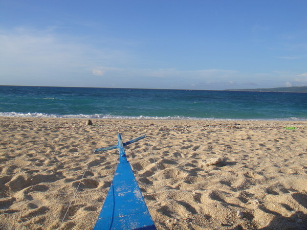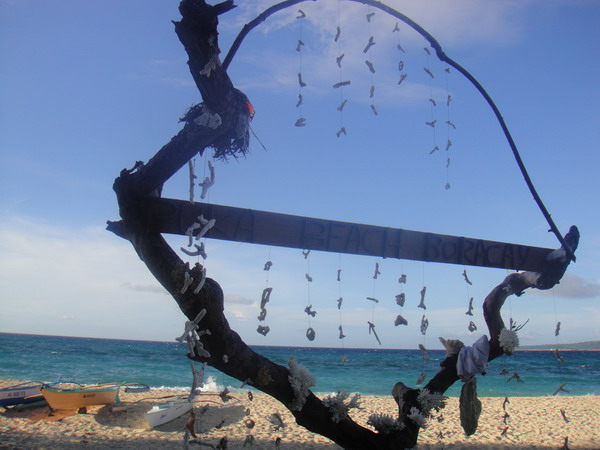 這裡的沙不是白沙, 而且粗粗的貝殼沙! 看到沙灘附近很多在賣貝殼飾品的小店家, 我想他們應該都在這裡拾貝殼製做飾品的吧.