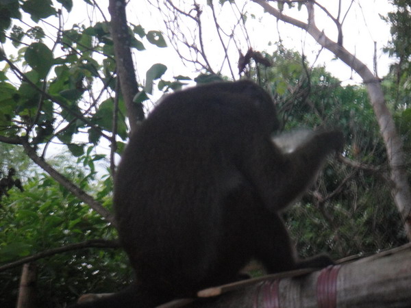 後來法國麵包一直在拍他 他不爽一直露出牙在亂叫, 我們才離開(哈 ~自戀狂小猴子)