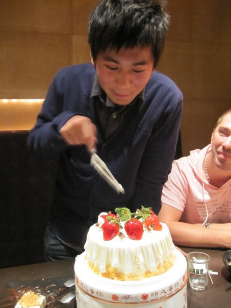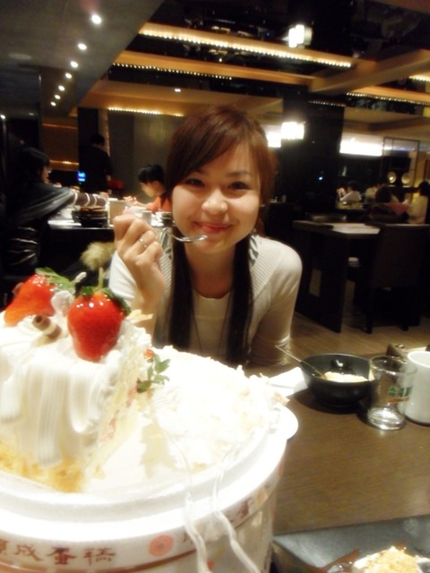 這次粒粒有準備一個生日蛋糕要給綸綸surprise!請餐廳先幫我們冰起來,但是餐廳工作人員在搬送的時間不小心缺了一角, 因此他們立刻去外面最近的順成買蛋糕, 而因為粒粒原本的是巧克力蛋糕, 出去買蛋糕那位同仁還打電話回來請其他服務人員問我們說巧克力蛋糕賣完了, 改草莓的可不可以?!  真的是 就甘心!
