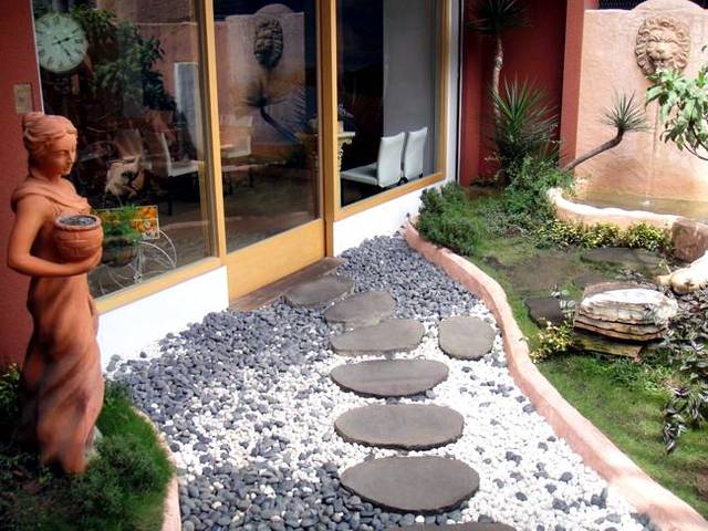 進入餐廳前會先經過一個小公園, 有噴水池, 雕像 還有一小條小石道路