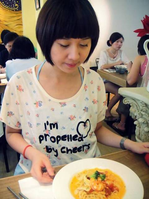 Alice點的是本店的招牌 粉紅醬鮮蝦雞肉義大利麵