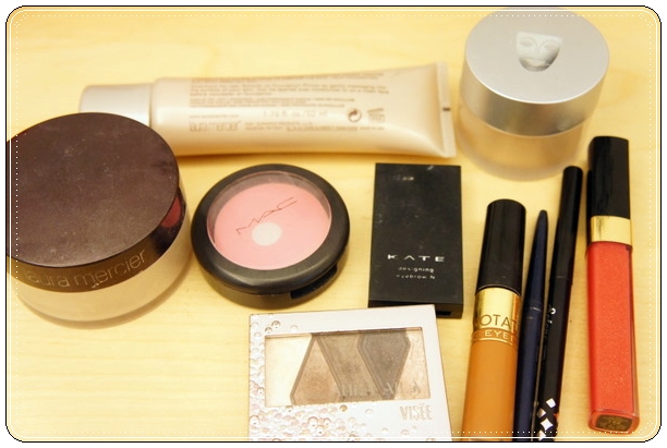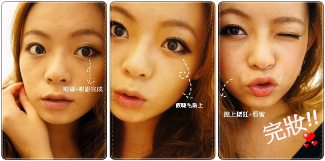 底妝完成了, 接下來把眉毛畫一畫, 眼影塗一塗, 眼線再畫粗一點, 然後再把假睫毛戴上