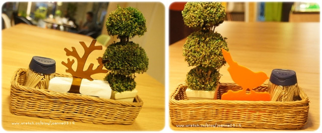 桌上擺設的小籐籃也好可愛, 餐巾架的形狀都不太一樣呢