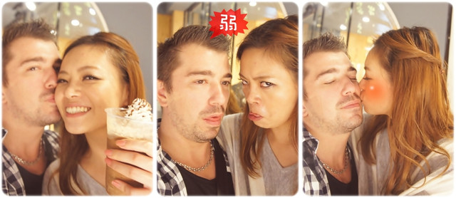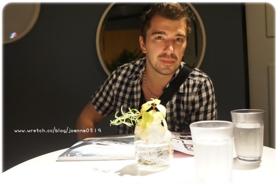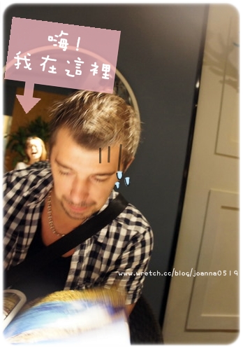 ((好啦~其實是我自己屁股移過去他的座子, 和他擠一張椅子)