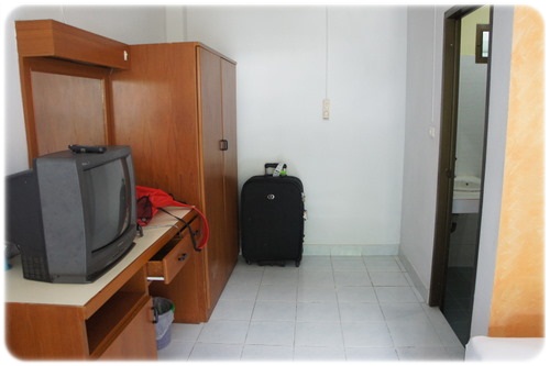 電視機是古老胖胖的機型(哈) 還有有一個木製衣櫃及簡單的浴衛(浴缸,馬桶.蓮蓬頭)