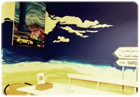 柚柚和法國麵包選擇坐在這裡, 因為這裡有我們喜歡的海洋風元素, 超愛的, 而且桌子比較大一點