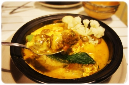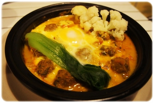 牛肉丸、蕃茄、月桂葉、摩洛哥香料燉煮而成,牛肉丸給的好有誠意喔!!! 上方還有一顆蛋以及些許的青菜
