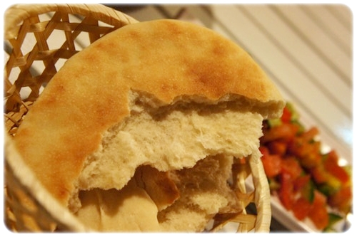 而摩洛哥麵包-pita的口感和我們常吃的麵包不太一樣!   比較紮實有嚼勁, 放在口腔內慢慢咀嚼後會有麵粉的香氣