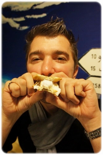 烤完的棉花糖, 可以自己沾自己喜歡的醬,加上餅乾, 就是烤棉花糖夾心餅乾