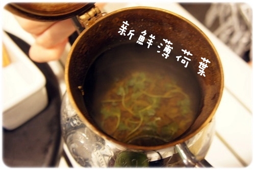 打開壺蓋, WOOOW ~真的有薄荷葉耶!  和我們平常喝的薄荷茶包完全不一樣