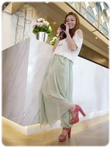 柚柚只有158 , 所以要再加個高跟鞋才不會走路踩到裙子跌個狗吃屎, 穿上高鞋子, 看起來氣勢也高高
