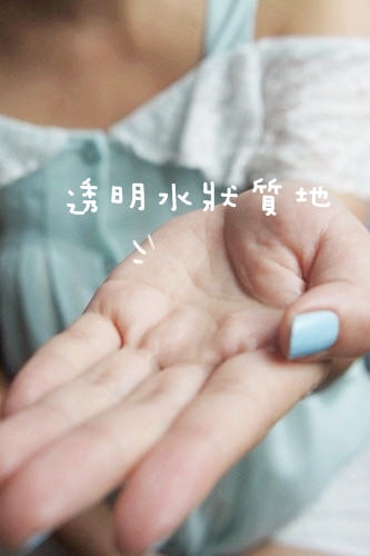 ★質地偏水狀, 顏色在手心上看起來好像變成透明了