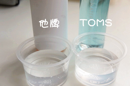 把toms的卸妝油倒入清水中, 真的遇到水就立即的變成乳白色的, 而且是立馬的那種速度