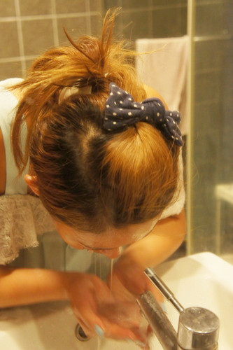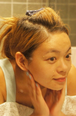 之後再來去洗臉, 其實用化妝棉就可以了,但柚柚還是習慣要用水洗, 哈哈哈