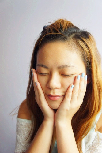 再輕輕用手心來按壓, 讓水珠滲透至肌膚裡面去,用起來非常的清爽