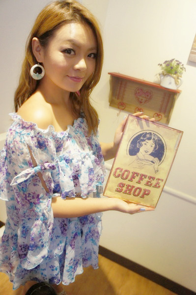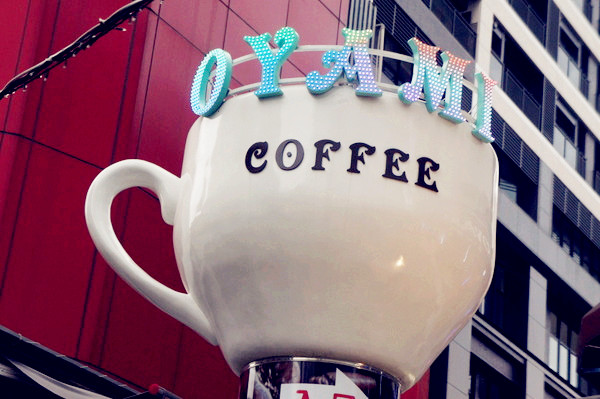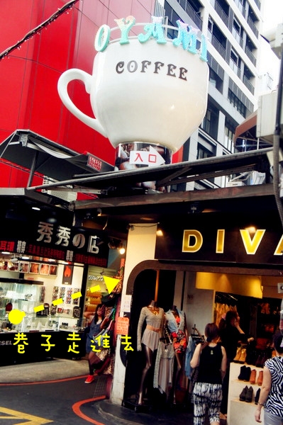 然後走進來會先看到一個巨無霸咖啡杯, 一整個超帥氣的, 而且上方還有Oyami 的LED招牌, 閃亮亮