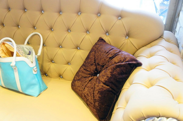 沙發很大耶!而且還有鑲上亮晶晶的鑽石, 一整個很有貴氣,還有舒服的絨布抱枕