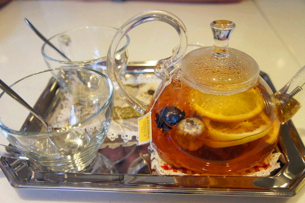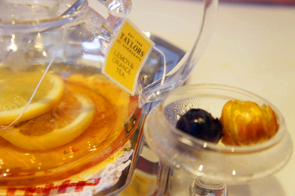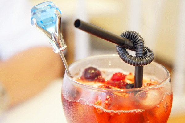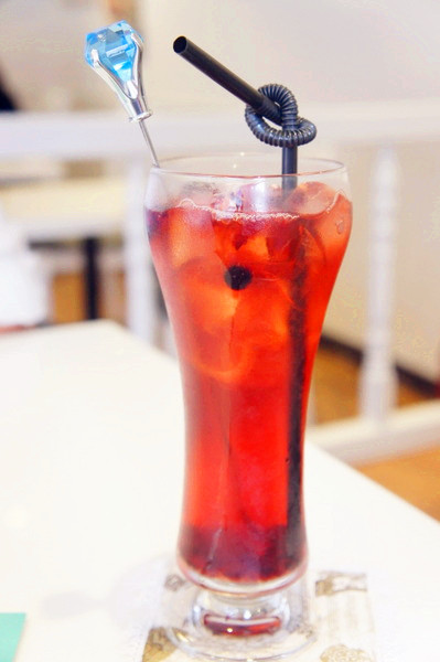 寶石攪拌器超漂亮的啦! 感覺用了就會變成公主一樣, 哈哈哈哈,茶裡頭有放了一些水果耶! 而且有香甜的水蜜桃味, 很清爽