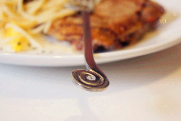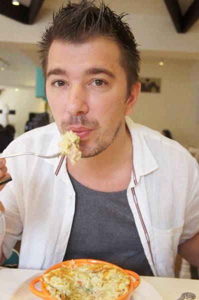 剛上菜時焗飯明明就很漂亮,但一被法國麵包接手後就馬上被他用的很可怕XDDD
