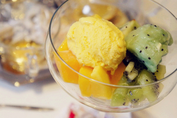 但吃起來真的意外的協調, 好好吃, 好綿密喔! 而且還有切成小丁狀的新鮮水果, 超級多維他命C的,讚讚