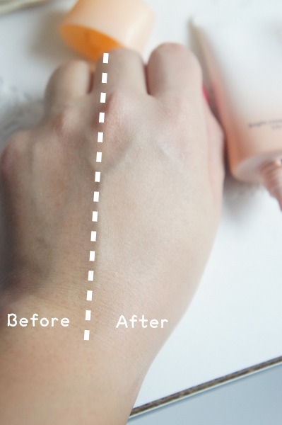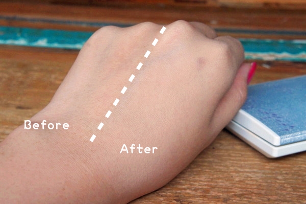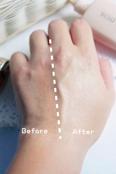 使用在手背可以看的出來明顯的提亮不少,因為裡面有適度光反射,可以讓肌膚更透明(大姆哥)