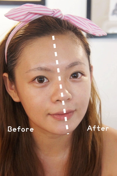 再來擦在臉上, 馬上就會感覺的出來有擦的那一邊立馬變的比較有氣色