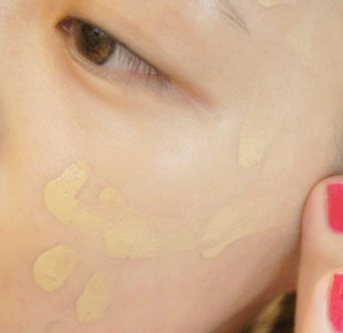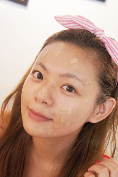 柚柚我習慣把粉霜點在臉上, 再用海綿推開